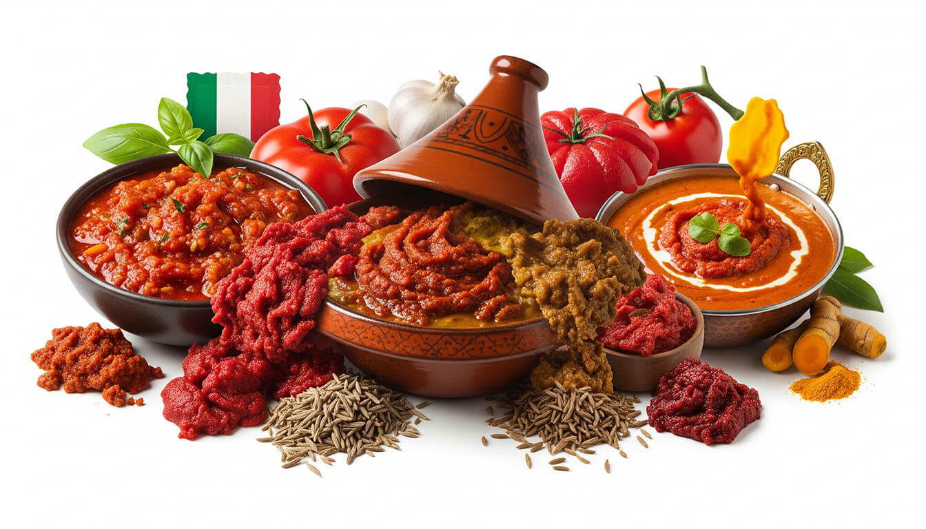 • North Africa (Morocco, Algeria, Tunisia): Tomato paste or concentrates are used in tagines, couscous dishes, and soups, adding depth and color to meals.